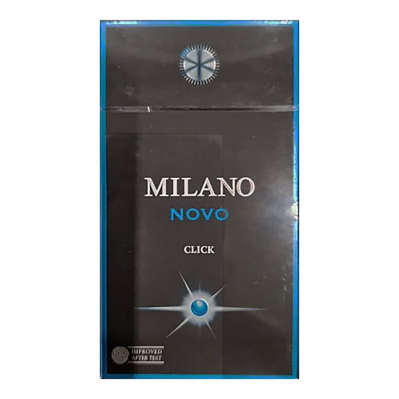 Сигареты Milano Novo Click Superslims — вариант линейки Milano, в тонком формате, без ароматических добавок, лёгкая крепость. Производство — ОАЭ. Пачка flip-top. Смесь American blend.